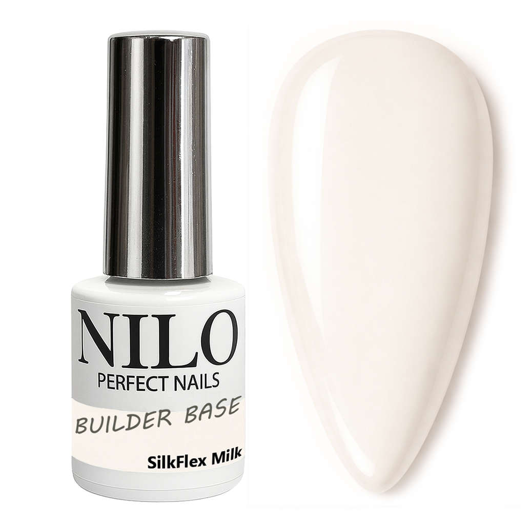 SilkFlex Milk to półtransparentna, mleczna baza budująca, która subtelnie wyrównuje koloryt paznokci, zachowując naturalny, świeży efekt. Nie jest bazą w pełni kryjącą – delikatnie maskuje płytkę, nadając stylizacjom elegancki wygląd typu natural / clean look.