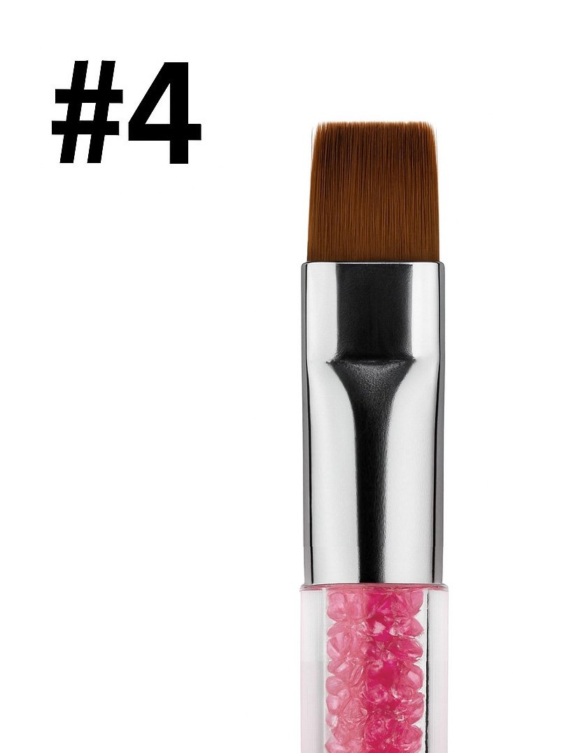 Profesjonalny pędzelek z elegancką rączką wypełnioną różowymi kryształkami, stworzony do precyzyjnych prac przy stylizacji paznokci. Idealnie sprawdza się do: