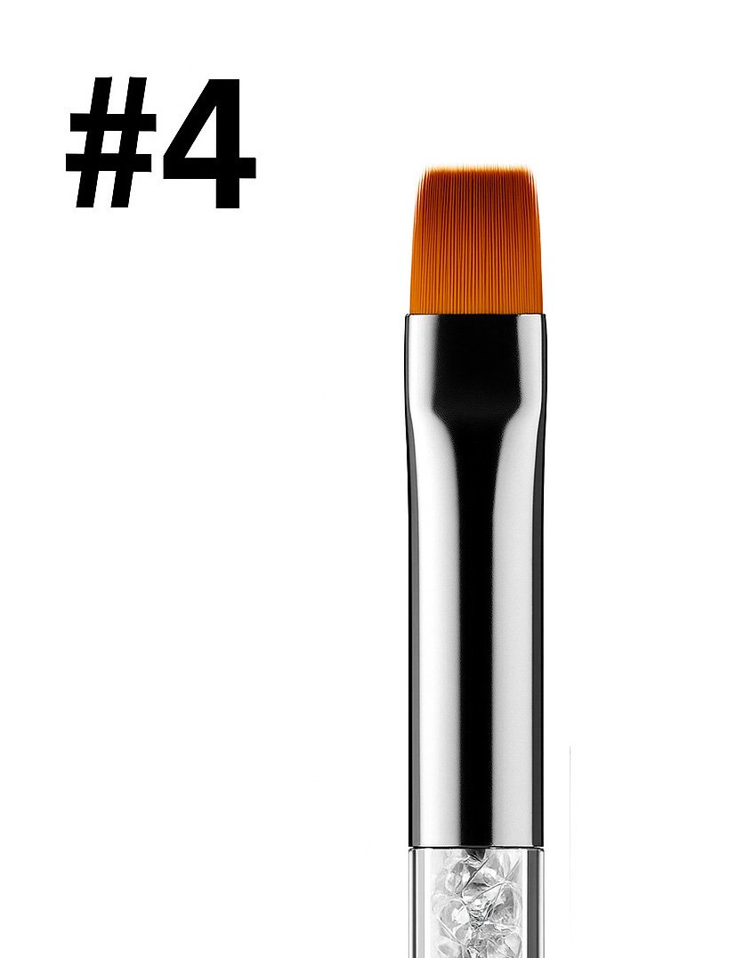Elegancki pędzelek do żelu i akrylożelu z białą rączką i komorą wypełnioną błyszczącymi kryształkami. Skośne, syntetyczne włosie zapewnia pełną kontrolę nad produktem, dzięki czemu idealnie sprawdza się podczas: